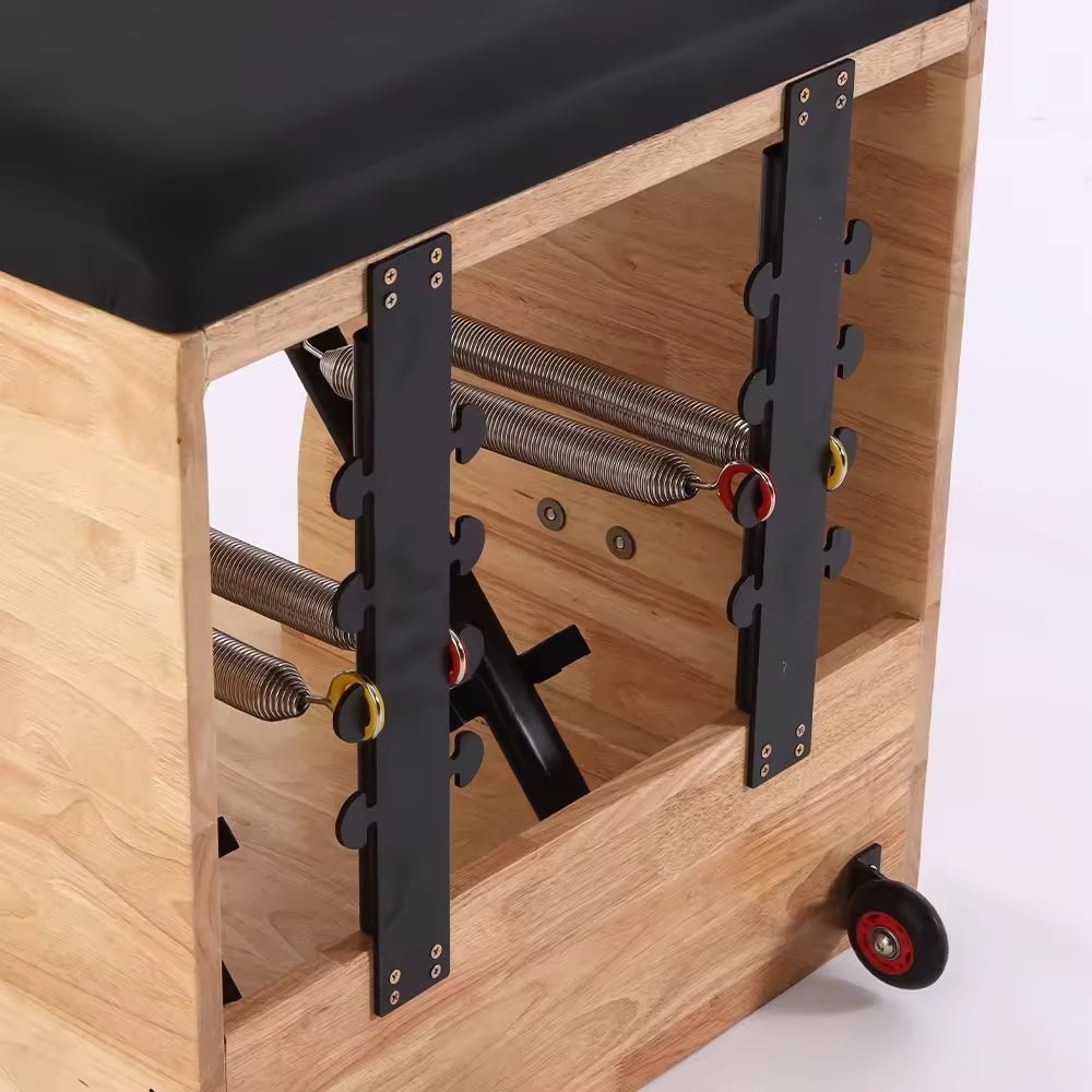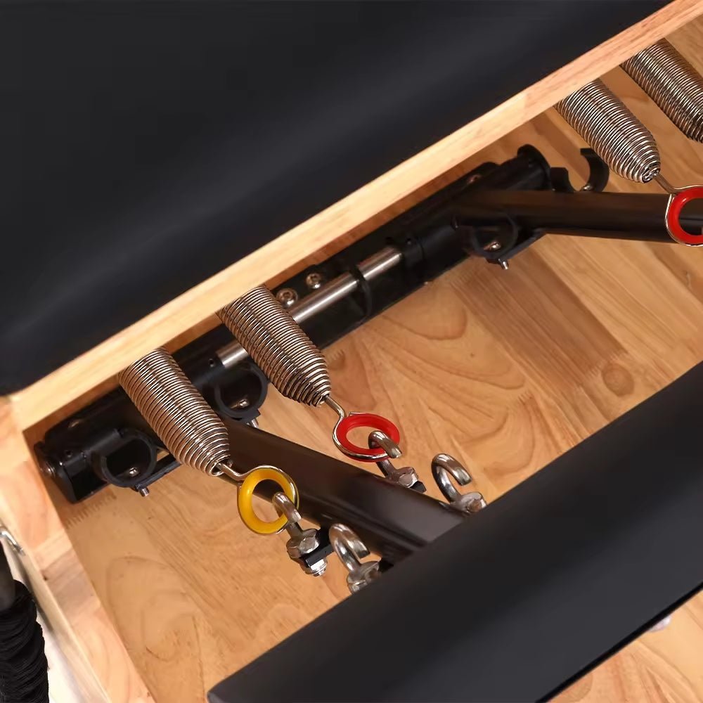 Eikenhout is een hardhout dat bekend staat om zijn sterkte en duurzaamheid. Het is bestand tegen herhaaldelijk gebruik en slijtage, waardoor het geschikt is voor de veeleisende oefeningen en bewegingen die op Pilatesapparatuur worden uitgevoerd.