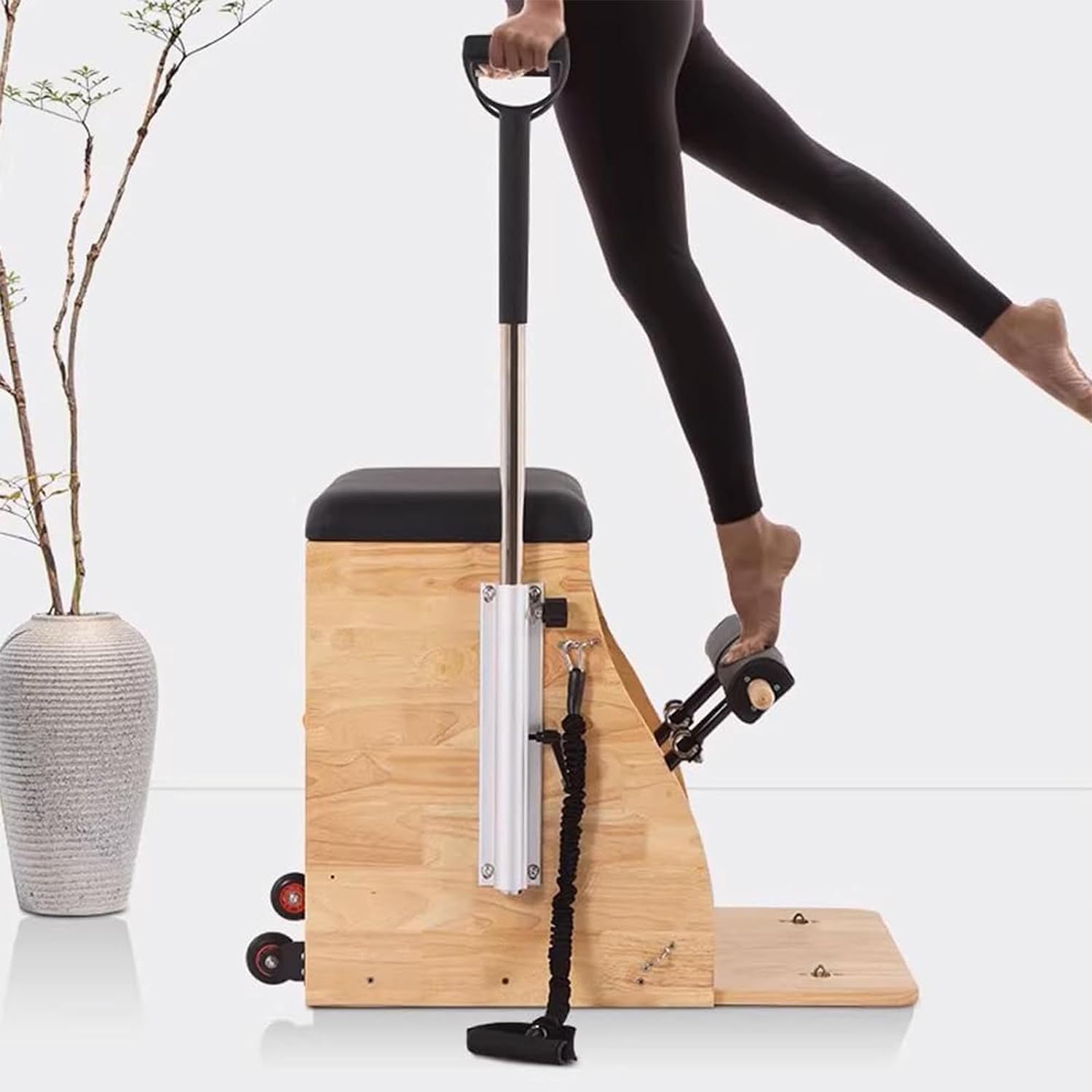 Thanks to its design and wheels, this Pilates chair offers outstanding storage convenience.