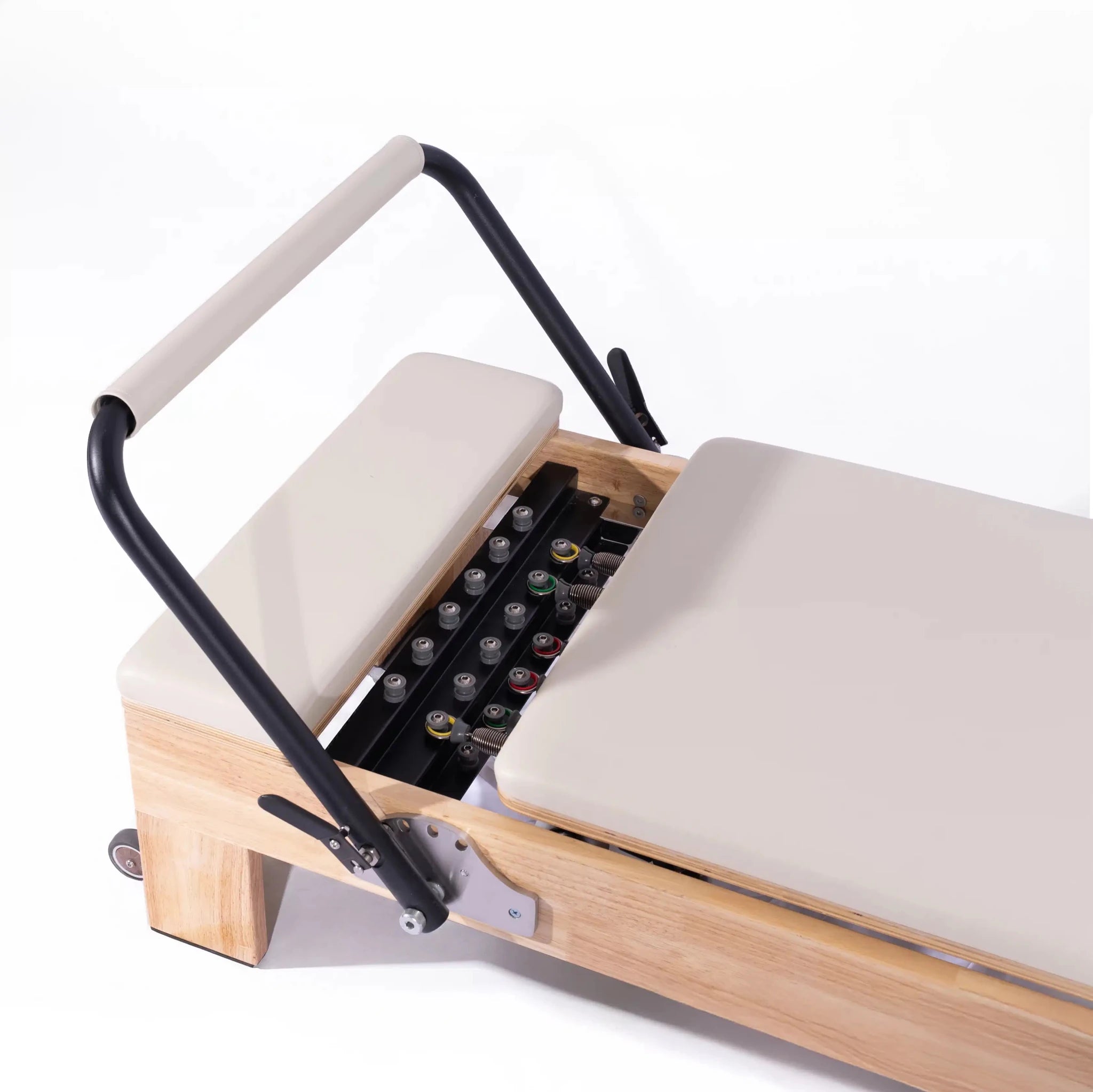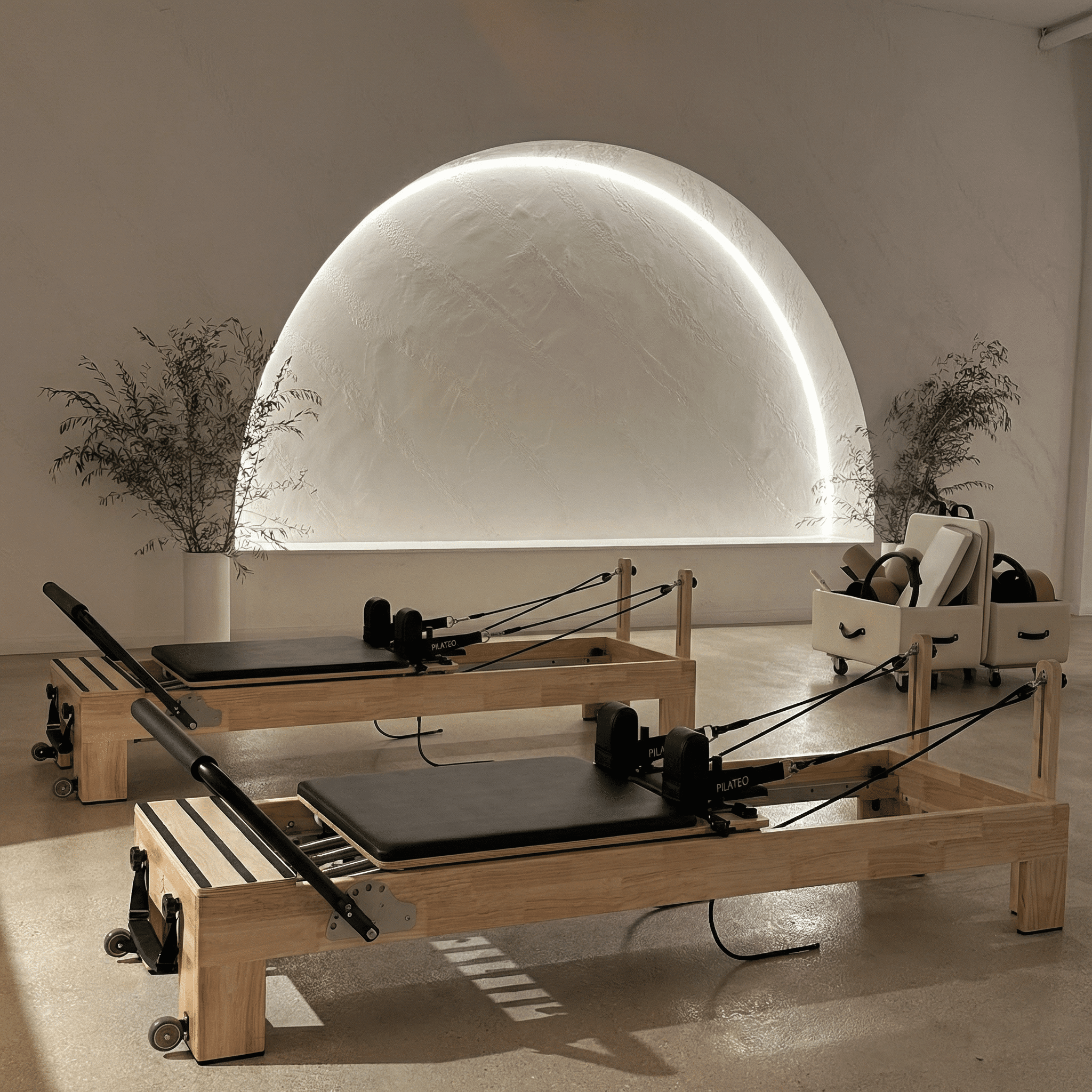 Combining the solidity of solid oak with a design conceived for intensive studio use, our Prestige Reformer establishes itself as reliable and durable equipment.